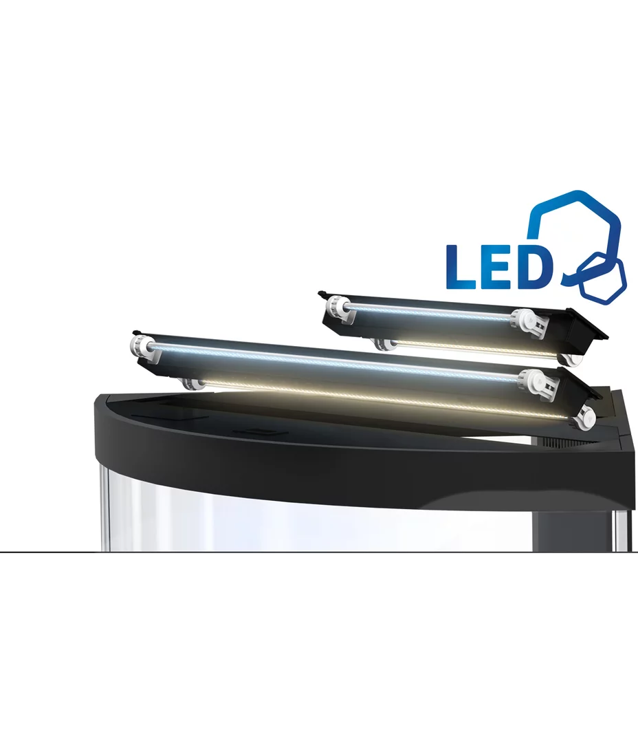 A differenza dei modelli più piccoli, il Trigon 350 è dotato di una configurazione a doppia plafoniera LED per coprire uniformemente l'intera superficie triangolare. La tecnologia MultiLux LED favorisce una vegetazione rigogliosa e rende brillanti i colori dei pesci, assicurando un risparmio energetico fino al 50% rispetto alle lampade T5. Il sistema è totalmente impermeabile e permette di operare in vasca in totale comfort e sicurezza.